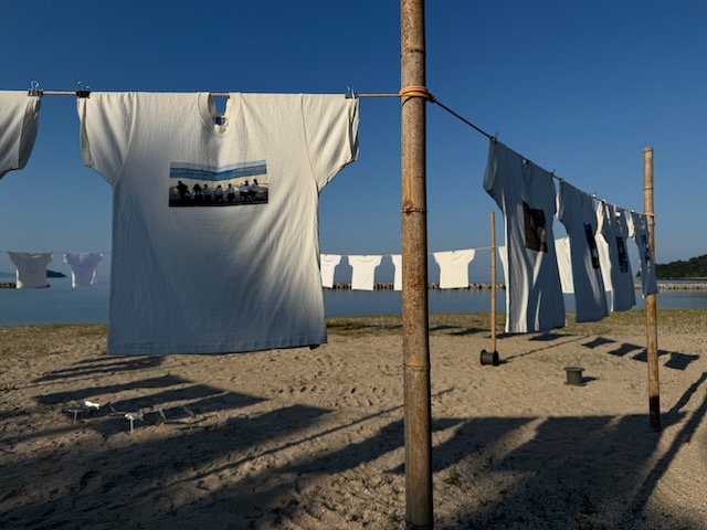 こちらはまた別のアートプロジェクトのようで、海岸にTシャツが並びます。